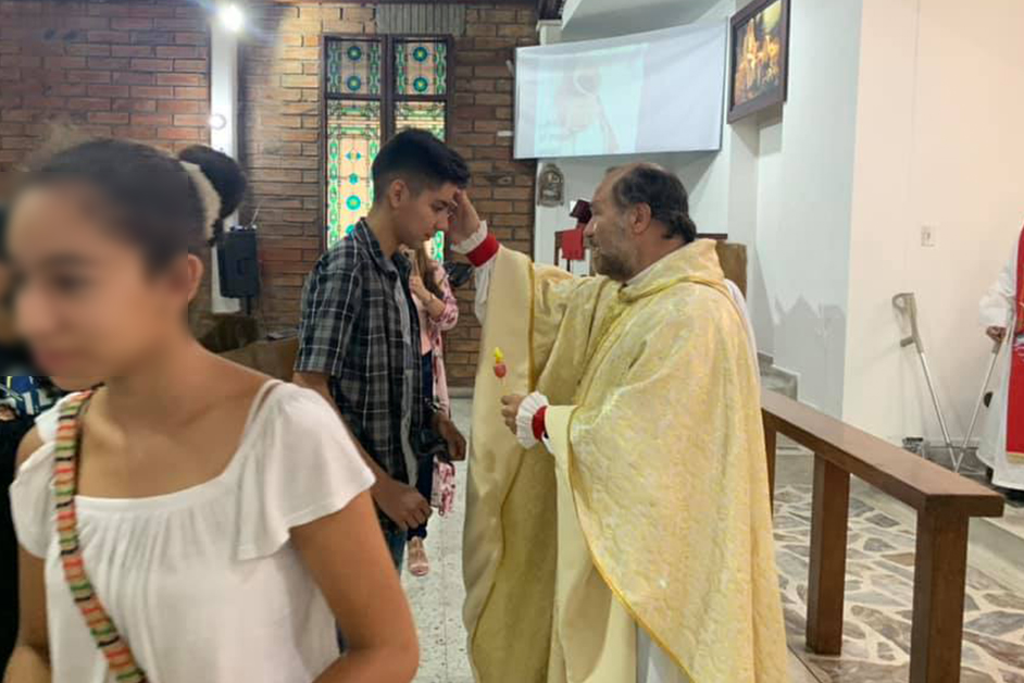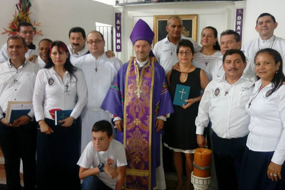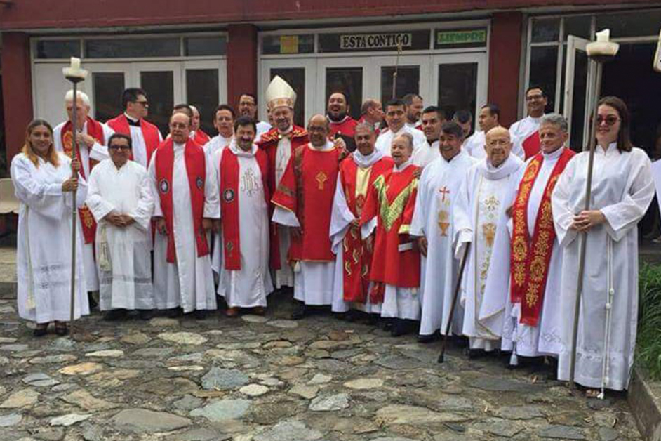 Obispo de la Iglesia Episcopal en Colombia oficiando Eucaristía, bendición de jóvenes.